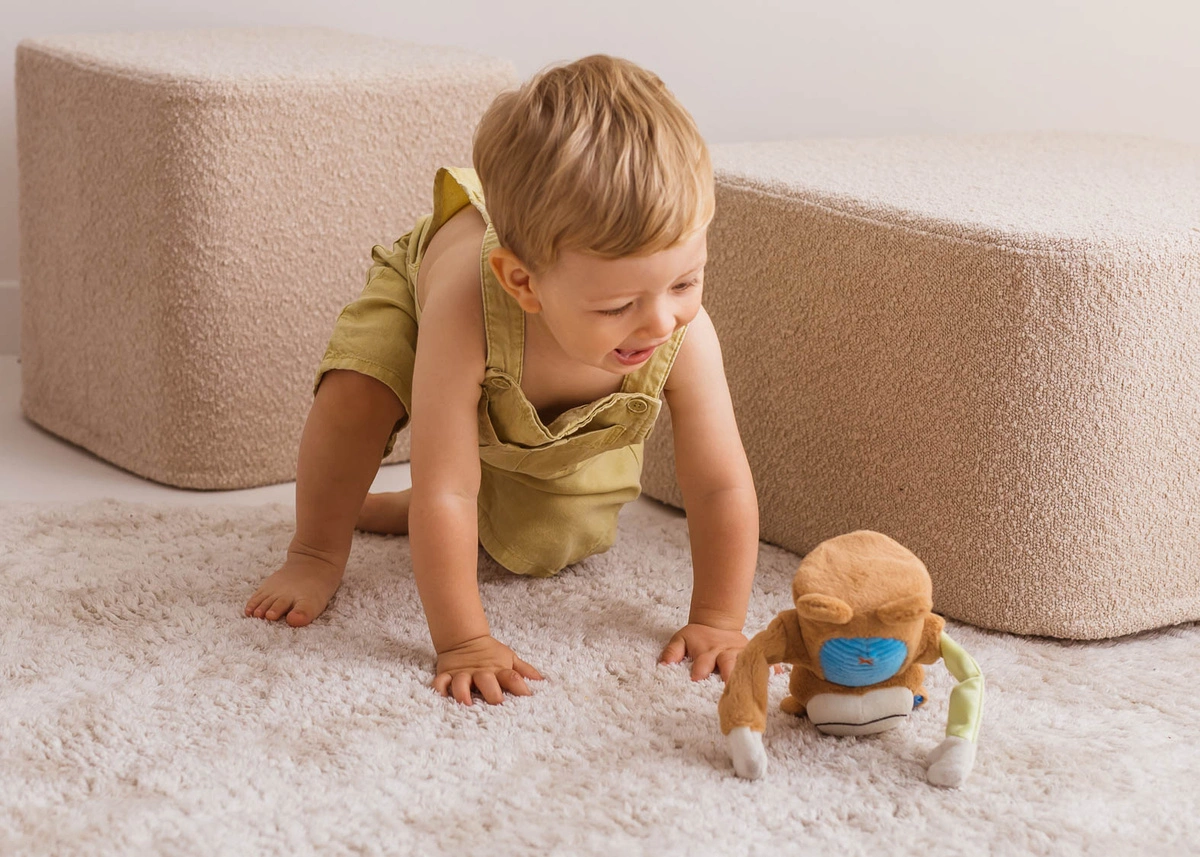 Małpka przemieszcza się zwinnie, zachęcając najmłodszych do ruchu.